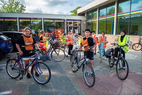 Fietsexamens bij De Kwartiermaker Het Fietshuis is er weer bij Foto & tekst: Olaf Smit (Foto: De 19 deelnemers wachten tot ze mogen vertrekken) A...
