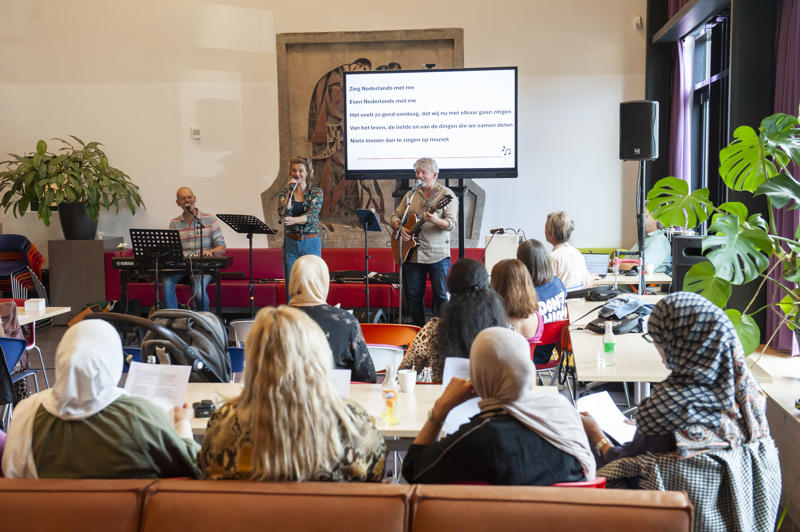 Onder begeleiding van drie muzikanten klonken klassiekers als Een beetje verliefd (André Hazes), Brabant (Guus Meeuwis) en Iedereen is van de wereld (The Scène). Al zingend konden de deelnemers de teksten meelezen op een scherm, waardoor taalplezier en oefening hand in hand gingen. Ook taalcoaches en docenten zongen mee.